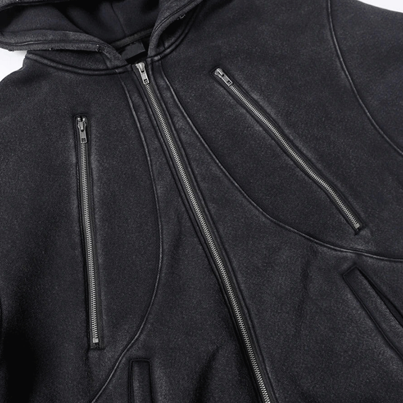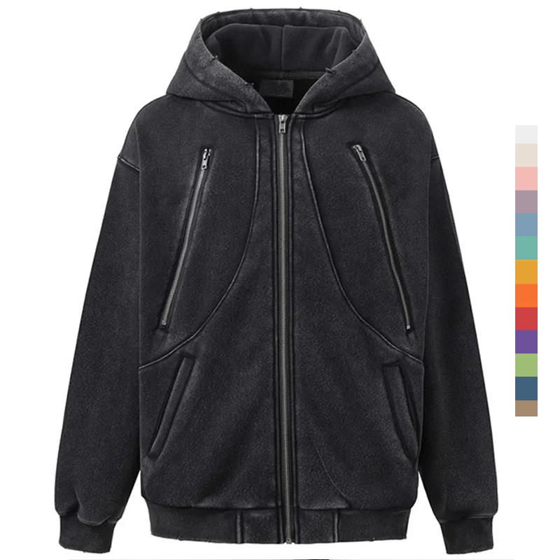 Moda personalizzata di alta qualità in cotone pesante vecchio taglio bianco sbiadito cerniera tendenza Casual innovazione popolare oltre gli uomini felpa con cappuccio
