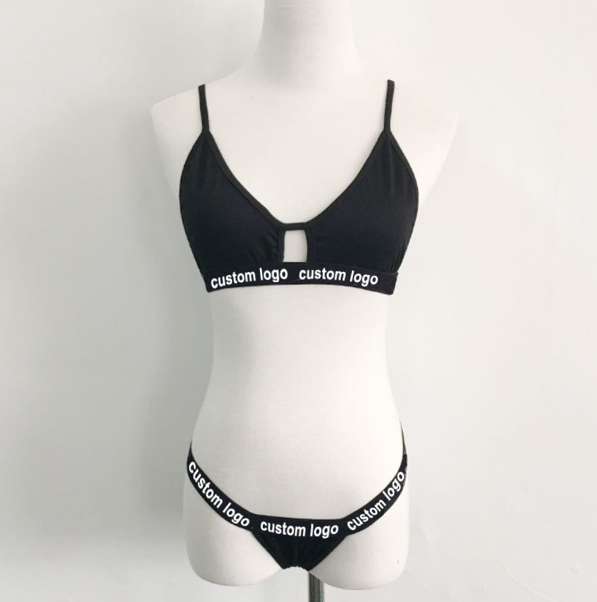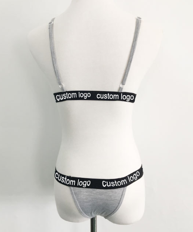 Fashion Custom Logo Sport Underwear Set Women Lingerie Cotton Bra and Thong Panties Set