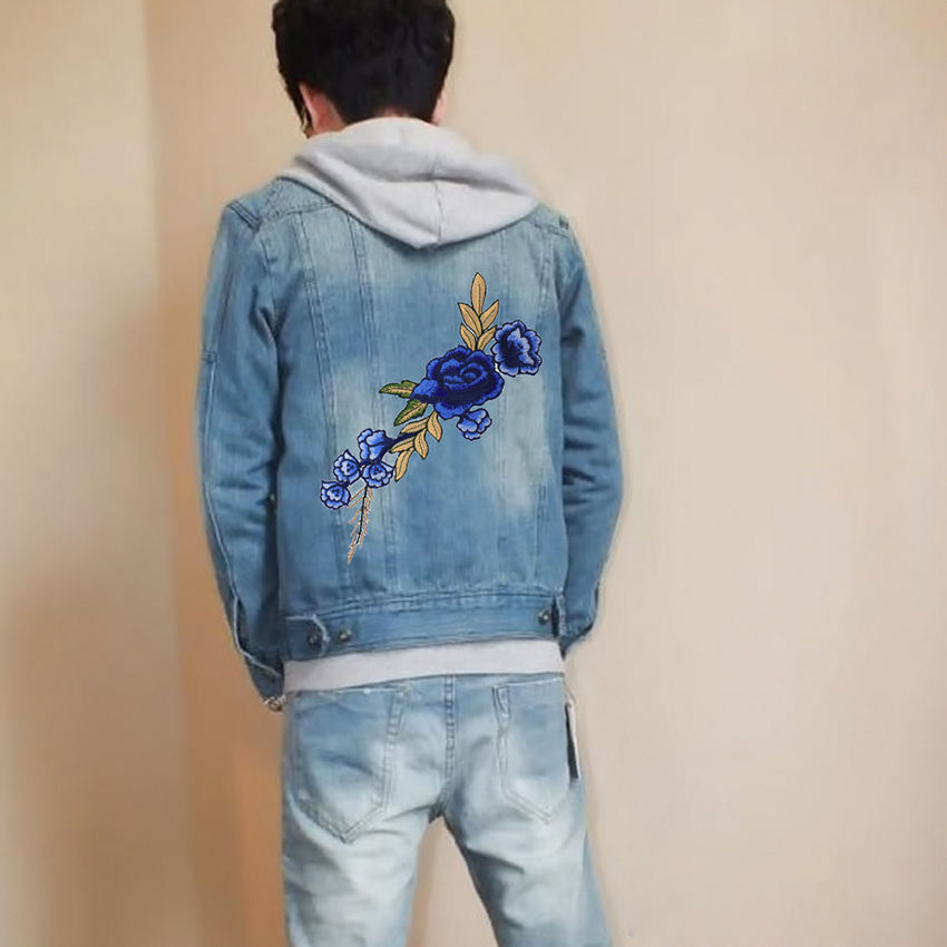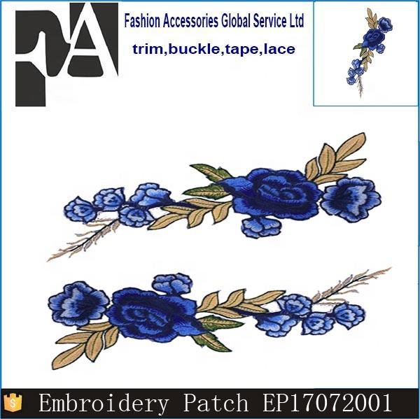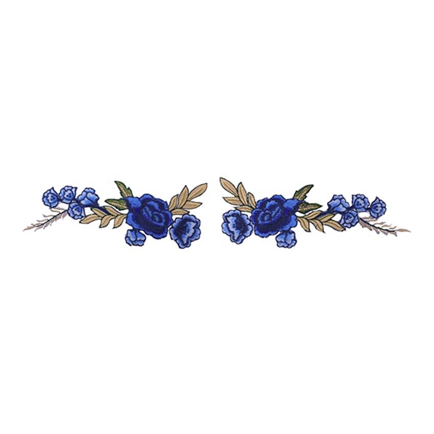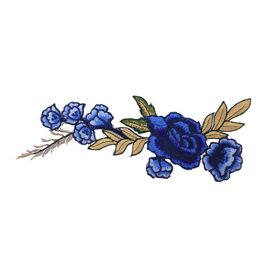 Nome articolo:Patch di fiori rosa con ricamo Applique blu intenso per abbigliamento