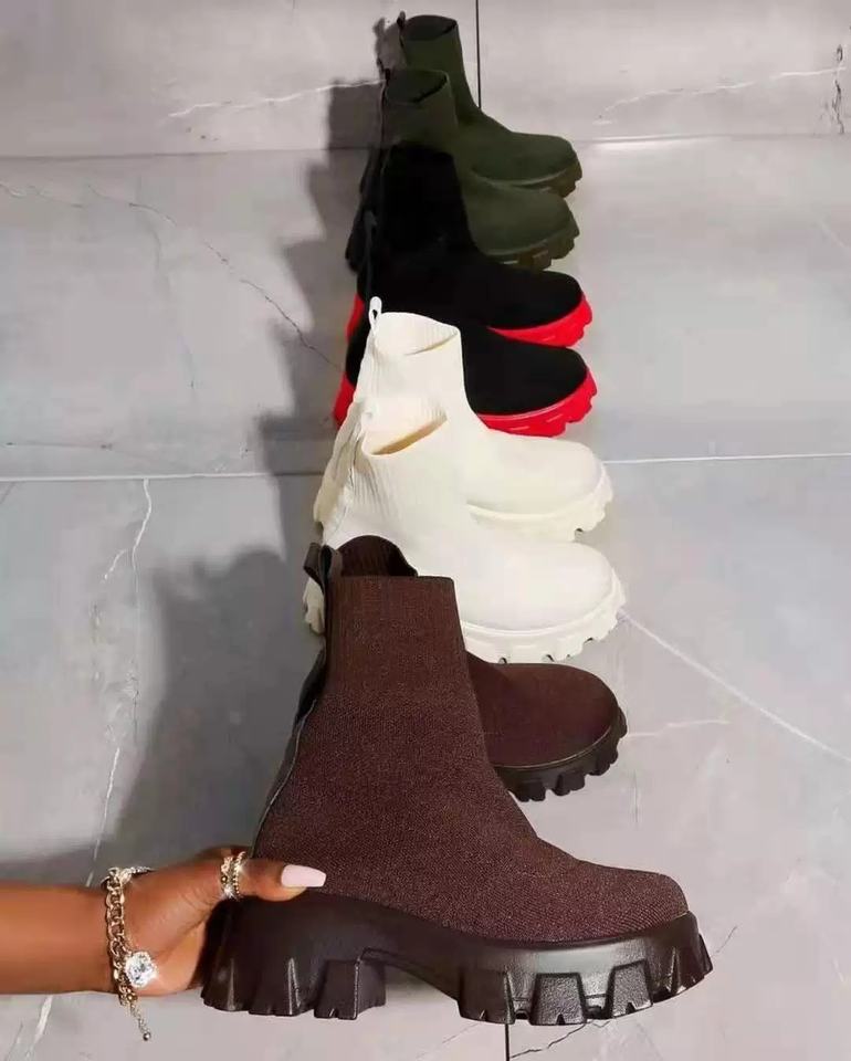 Stivaletti da Donna Bianchi alla Caviglia, Stivali da Donna con Platform Casual, Scarpe in Tessuto Tecnico Volante per Donna Taglia Forte 43 di Design alla Moda
