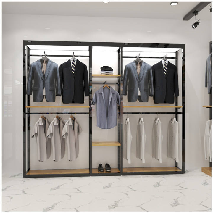 Design di moda negozio di vestiti scarpiera da esposizione mobili da uomo Stand di abbigliamento negozio decorazione porta abiti per negozio di abbigliamento
