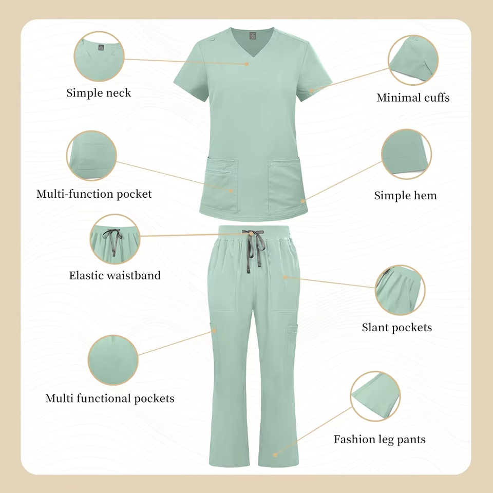 Divise Infermieristiche Personalizzate con Logo, Set a Maniche Corte in Tessuto Elasticizzato, Uniformi Mediche per Donne