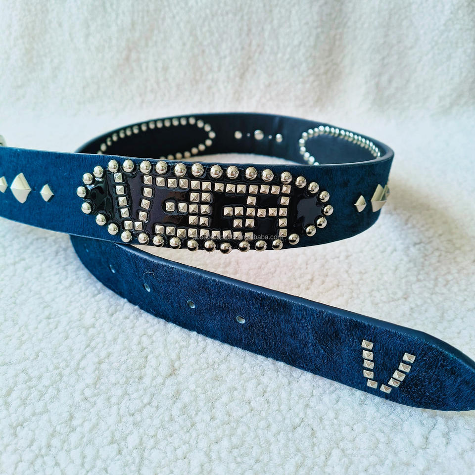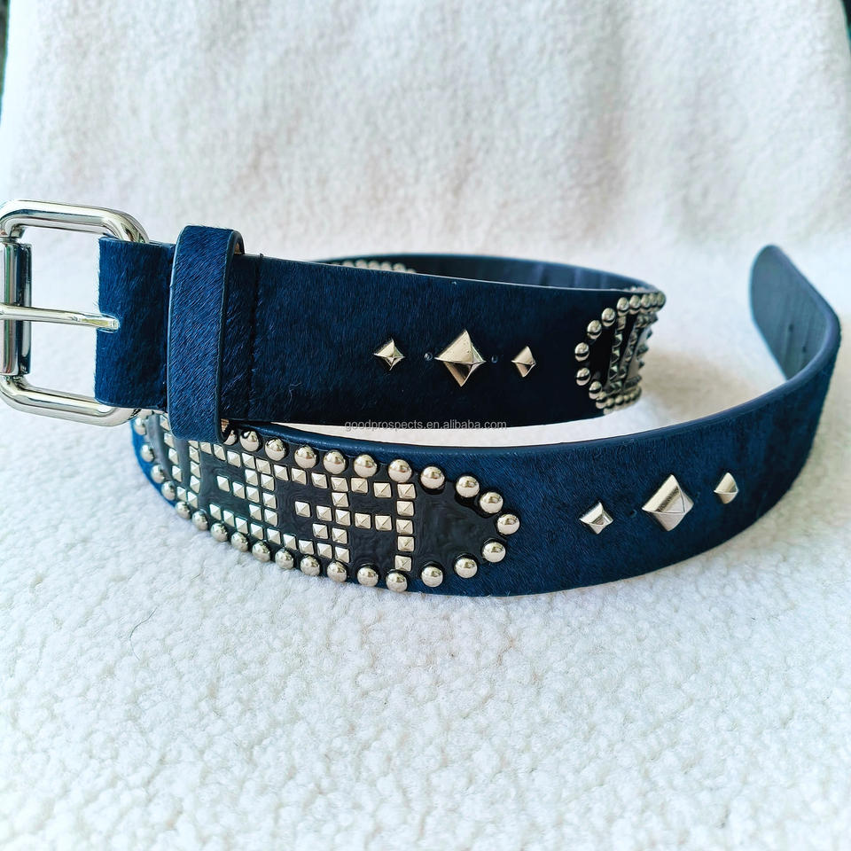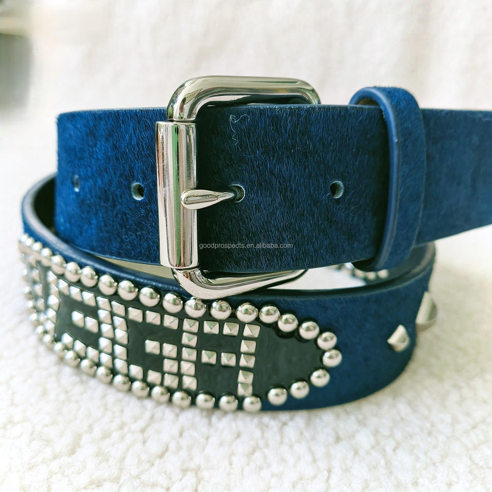 Moda Design rivetto borchie e capelli di cavallo cintura Jeans donna cintura punte in vera pelle nera con fibbia in lega di zinco