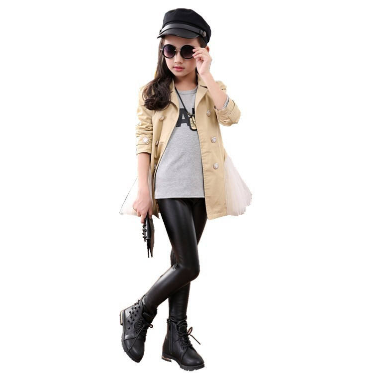 Product name:Clothing Shop Leather Outfit Tight Black Leather Pants For Kids Girls