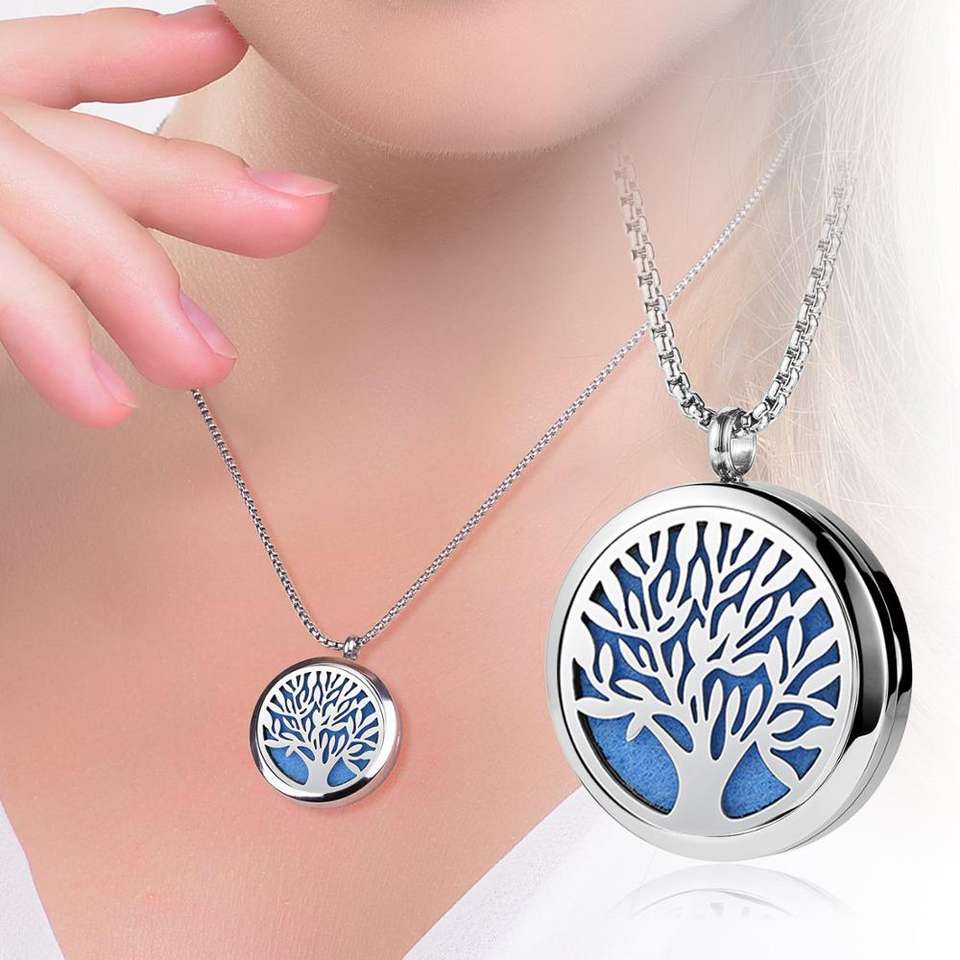 Fashion Diamond-free Life Tree Hollow Design Perfume Diffuser Aromatherapy Essential Oil Pendant Necklace