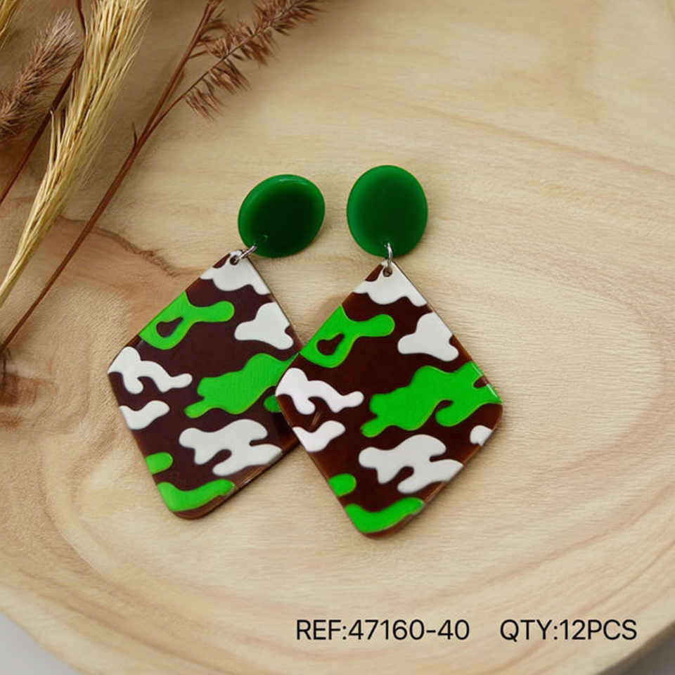 Orecchini pendenti alla moda con motivo mimetico verde marrone, borchie in acrilico per donna, 12 pezzi