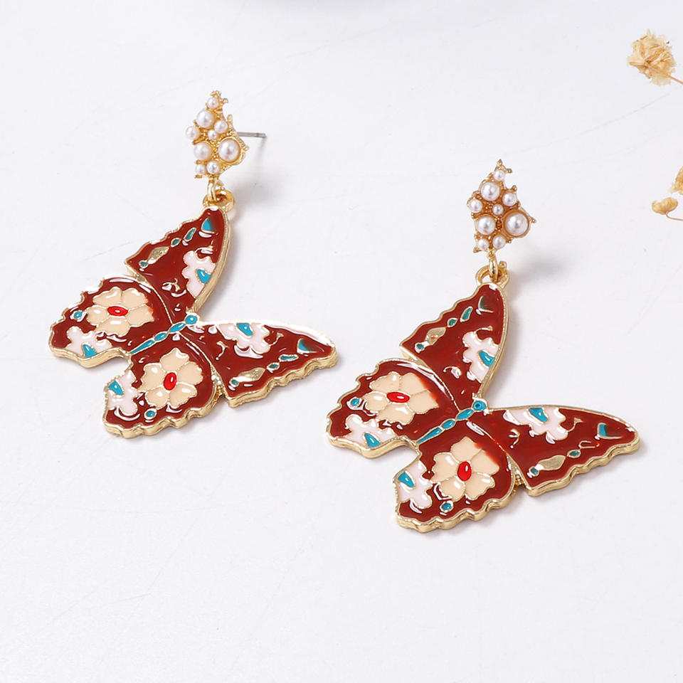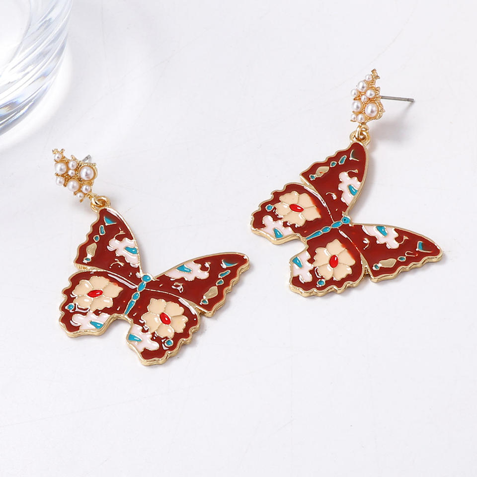 Orecchini a Perno con Grande Farfalla Colorata in Stile Etnico, Orecchini Pendenti con Farfalla e Fiore in Lega per Donne
