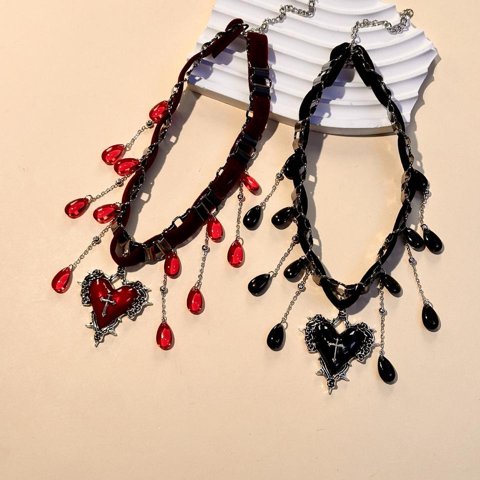 Collana alla Moda con Croce Esagerata, Goccia d'Acqua e Nappine, Design di Nicchia, Accessorio di Lusso Leggero