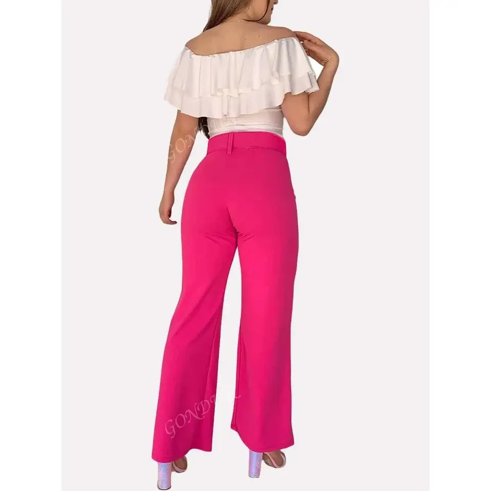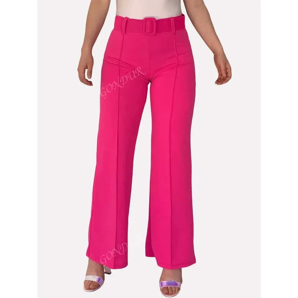 Fashion Flared Wide Leg Casual Party Elegant Belted High Waist Slim Dress Pants