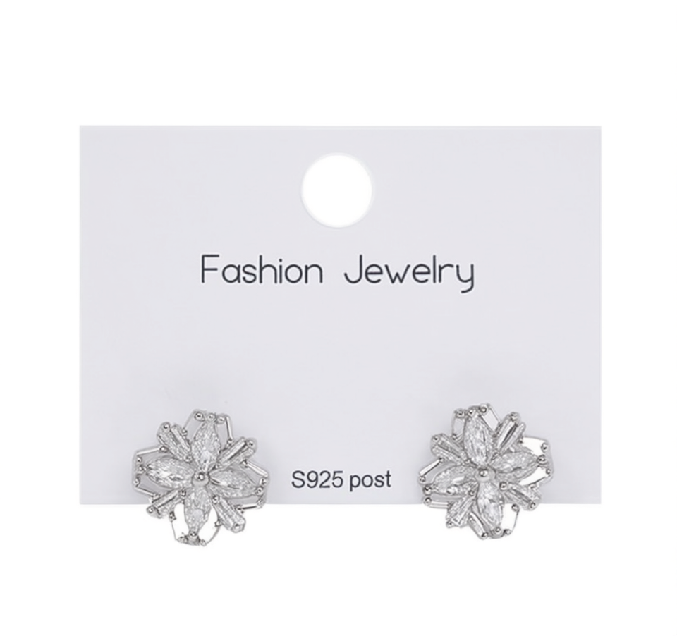Fashion Flower Stud Earrings Silver Crystal Marquise Cut S925 Post Women's Jewelry Gift