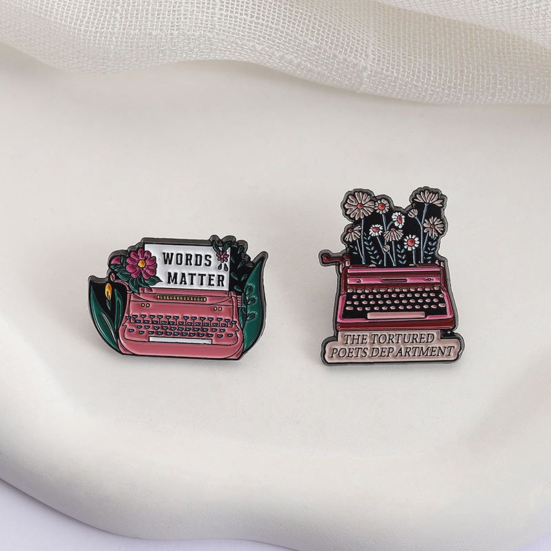 Fashion Flower Typewriter Enamel Pins the TORTURED POETS DEP ARTMENT WORDS MATTER Brooches Lapel Badge Jewelry Gift for Friends