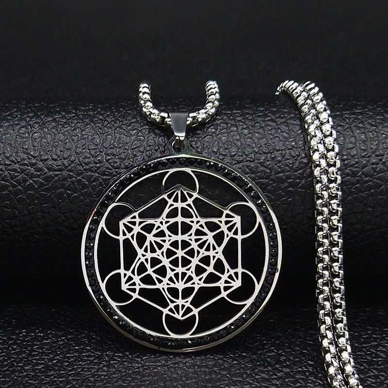 Fashion Flower of Life Stainless Steel Chakras Chain Women Men Necklace Metatron Cube Sacred Geometry Symbol Jewelry