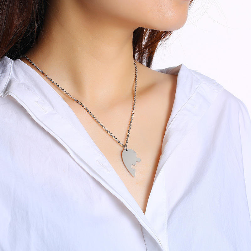Collana con Ciondolo a Cuore Spezzato in Acciaio Inossidabile Dorato, Gioiello dell'Amicizia alla Moda, Regalo per Coppie per San Valentino