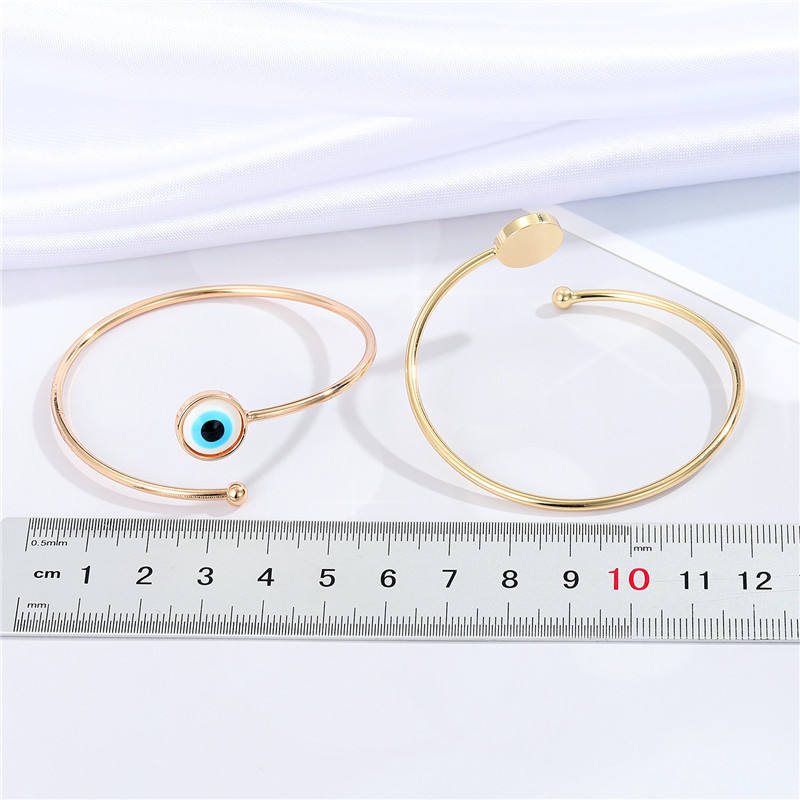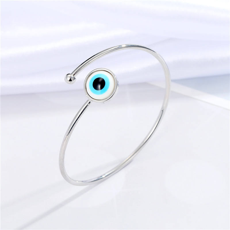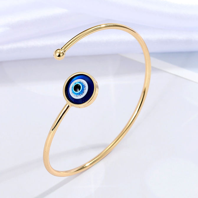 Bracciale a Polsino Aperto con Ciondolo Occhio Turco Grande Portafortuna Placcato Oro e Argento alla Moda per Donna
