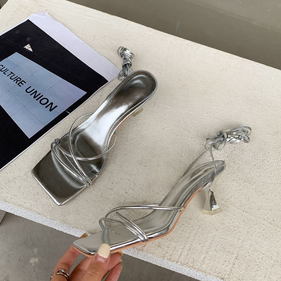 Fashion Gold Silver Sandals Thin Low Heel Lace up Rome Summer Gladiator Women Casual Narrow Band Shoes 2024