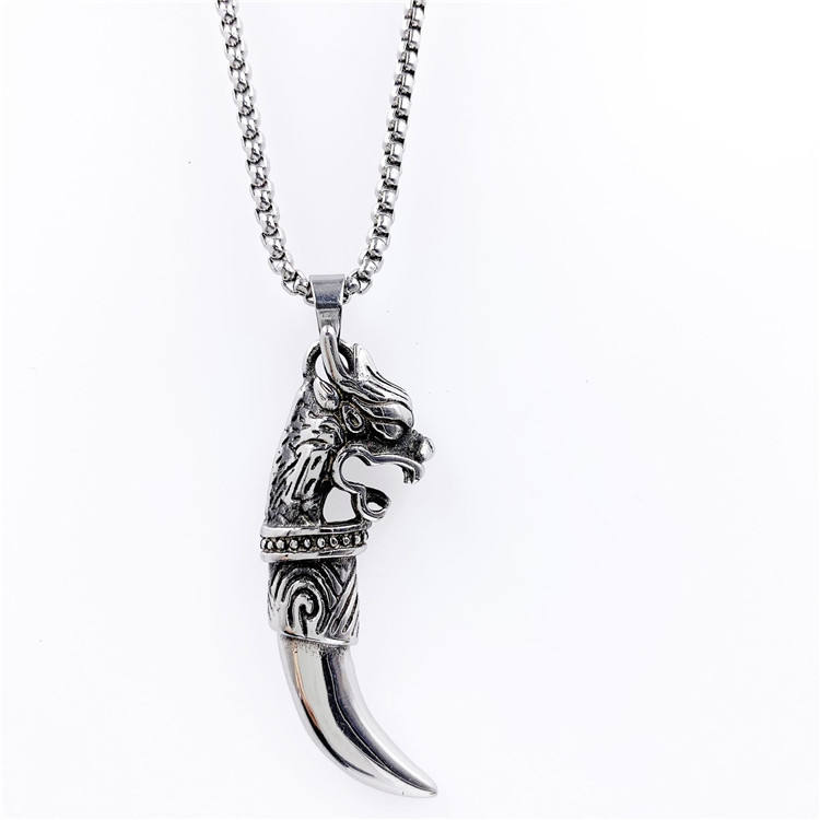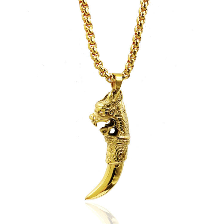 Fashion Gold Stainless Steel Tooth Ivory Shape Dragon Totem Pendant Men Hip Hop Necklace