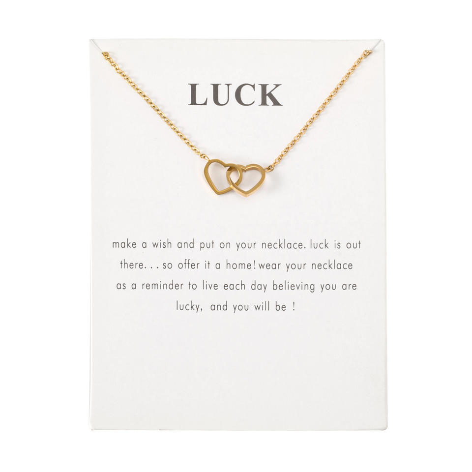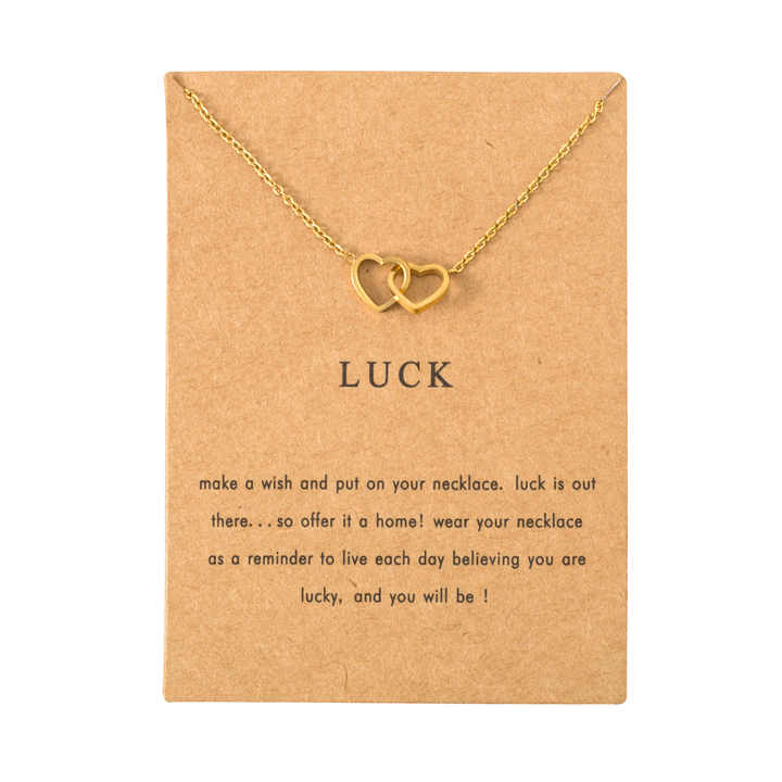 Fashion Gold Stainless Steel Women Necklace Smile Butterfly Double Heart Lock Sea Snail Pendant Necklace With Best Wishes Card