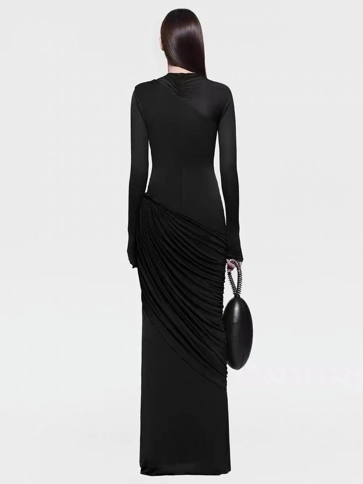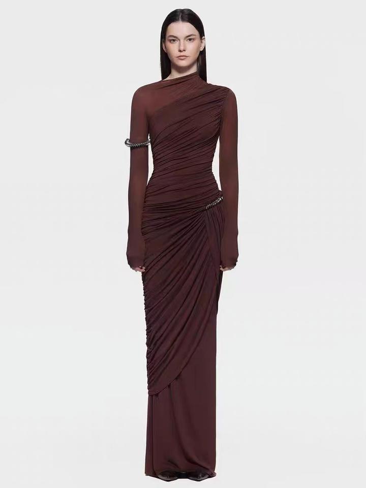 Fashion High Quality Vietnam 2026 Ramadan New Pleated Brown Elegant Long Dressstretch Knitted Long Evening Dress
