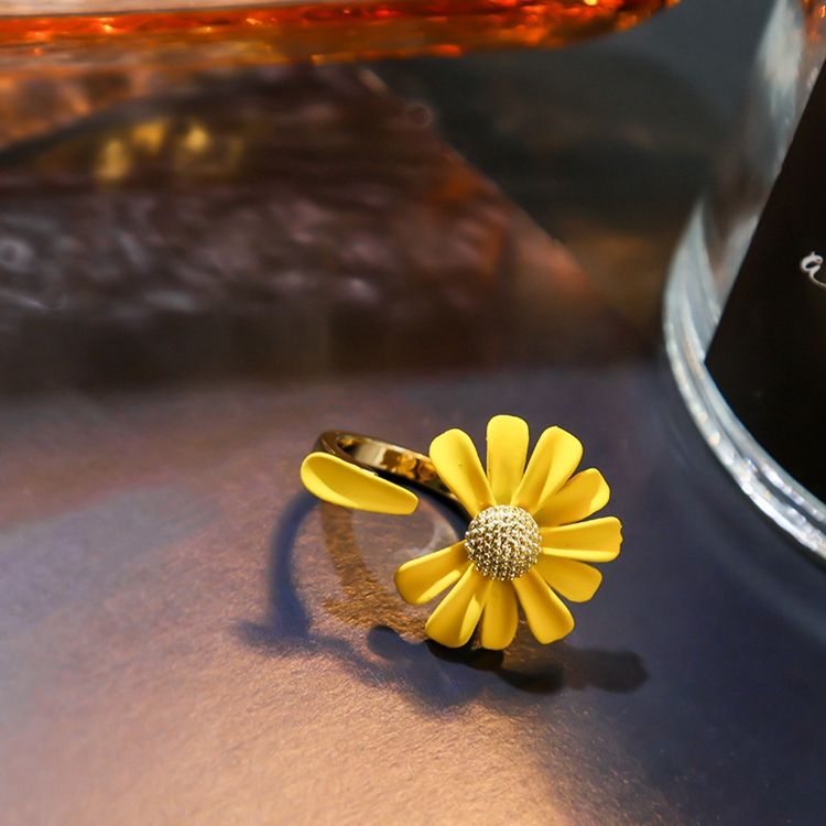 Fashion Hot Female Cuff Jewelry Metal Adjustable Flower Green White Daisy Women Rings Wedding Bands or Rings Engagement Trendy