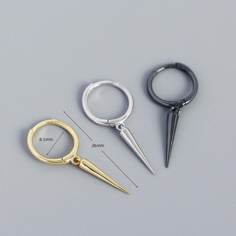 Fashion Hot Selling 925 Sterling Silver Simple Punk Long Plain Triangle Spike Hoop Earrings for Women Jewelry