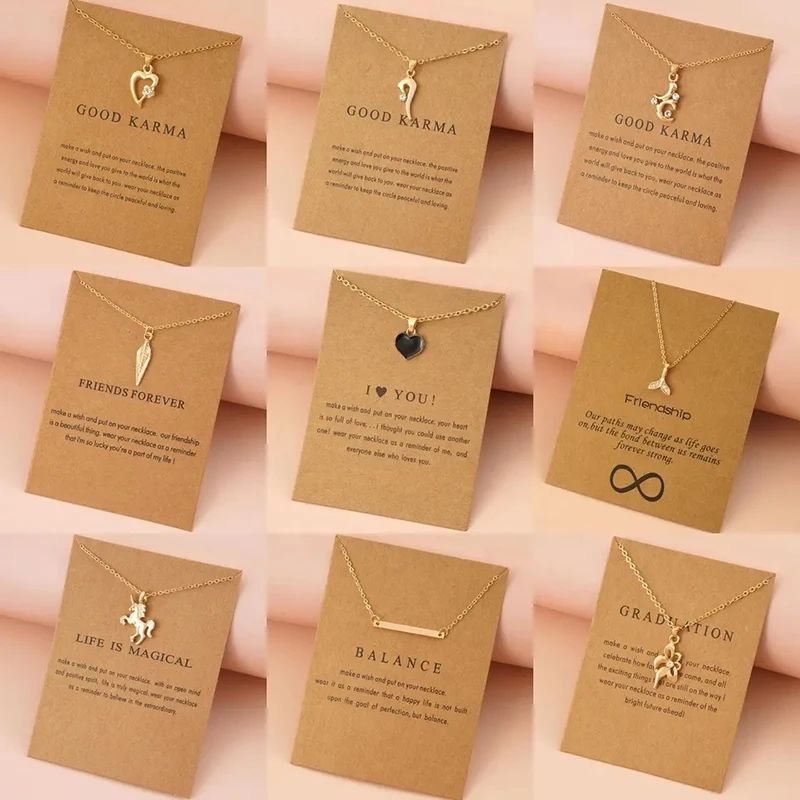 Fashion Jewelry Gold Plated Inspirational Femme Necklace Good Karma Message Card Necklaces for Women