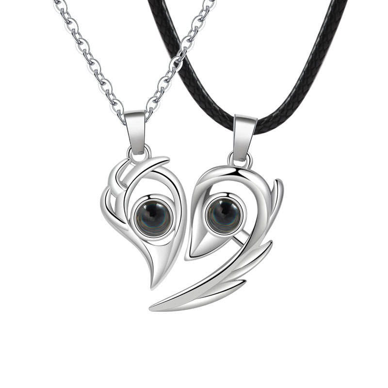 Fashion Jewelry Heart Shape Pendant Necklace Magnetic Geometric Design Pairing I love You Couple Pendant Necklace for Women