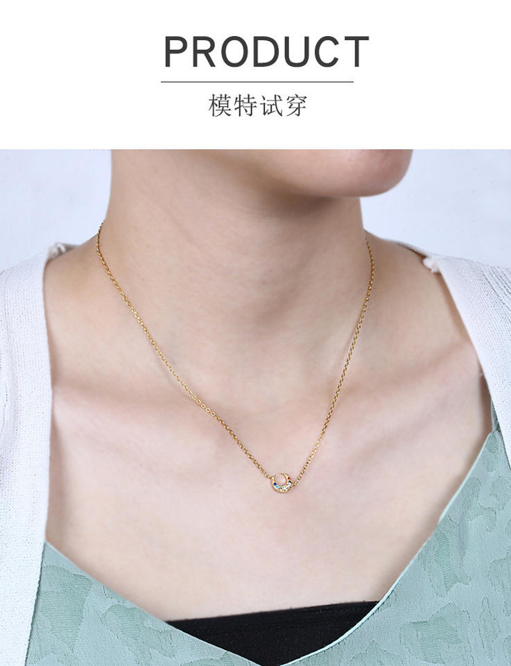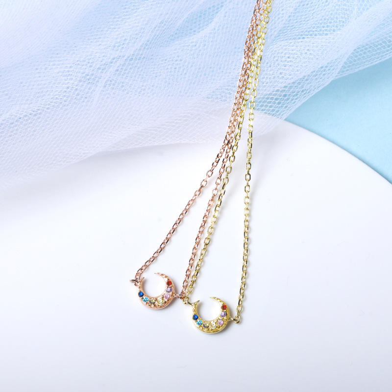 Fashion Jewelry Necklaces Sterling Silver 925 Moon Necklace Colorful Zircon Gold Plated Necklace for Women