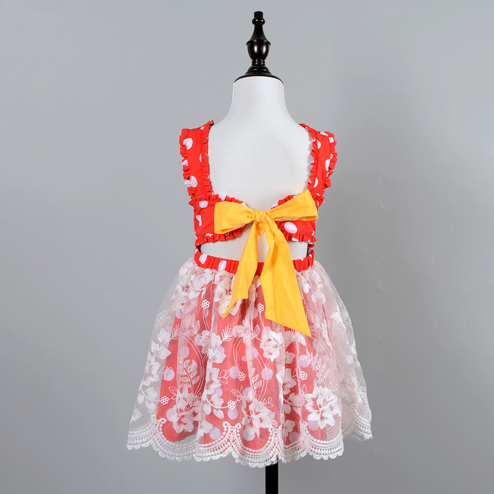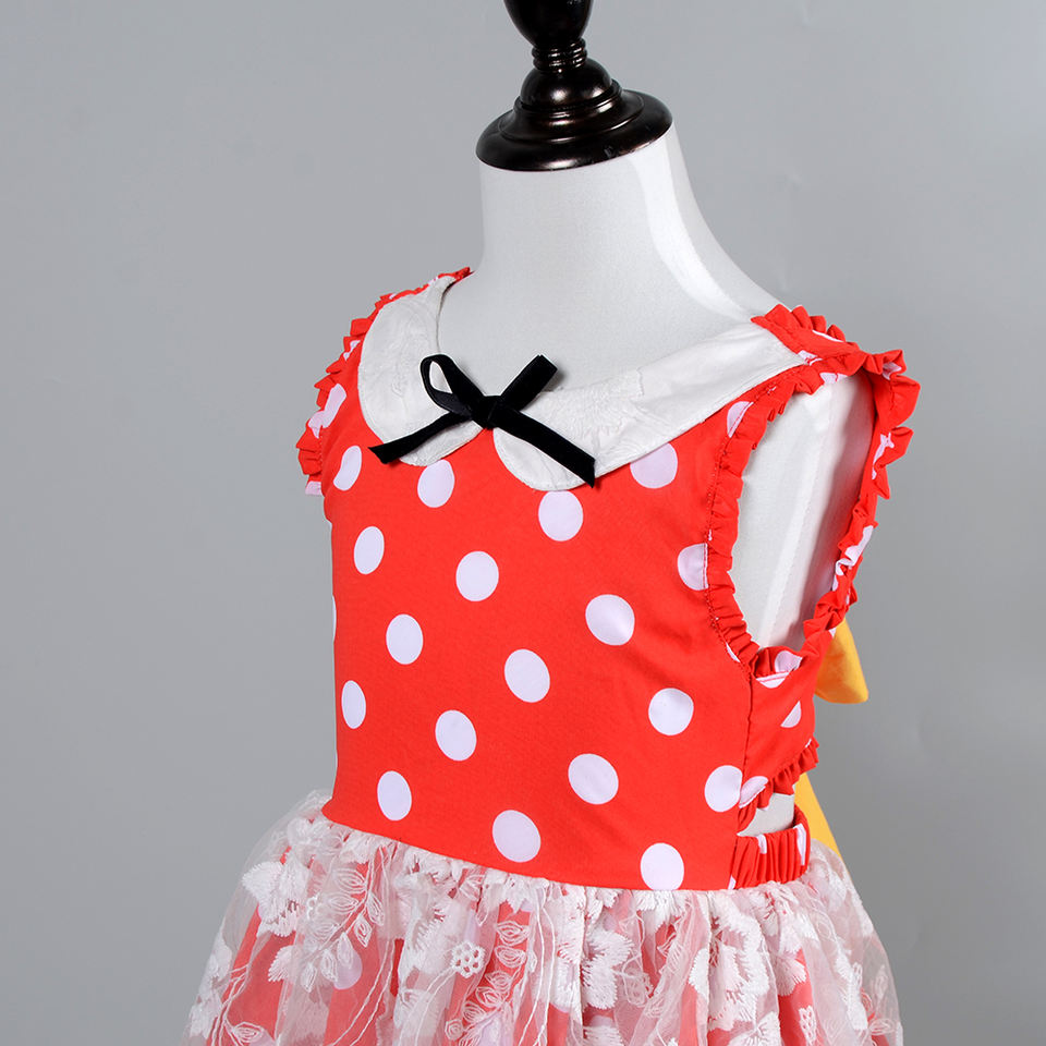 Fashion Kids Performance Costume Bow Knot Skirt Holiday Birthday Party Mouse Minnie Lace Tutu Cotton Summer Minnie Dress
