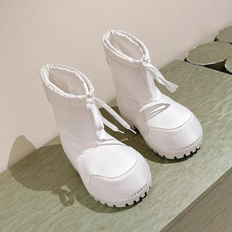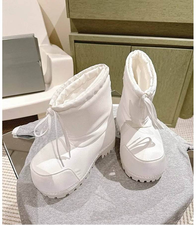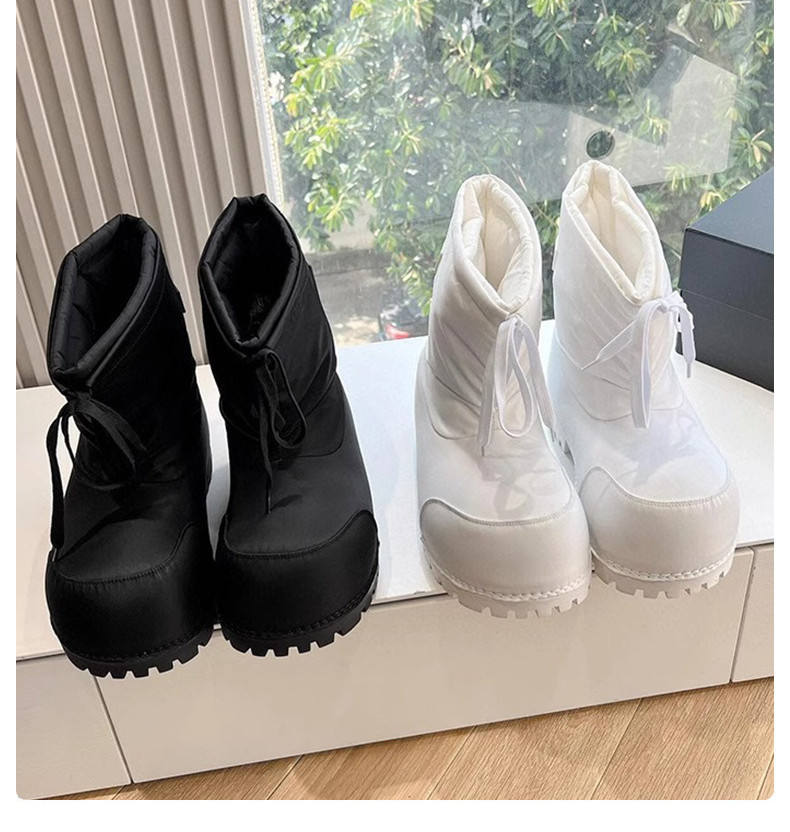 Stivali da Sci alla Moda per Donna con Punta Extra Arrotondata, in Morbidissima Pelle di Vitello Lucida, Scarpe da Neve Basse
