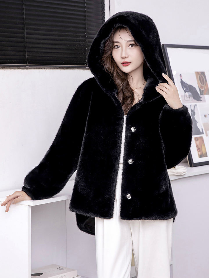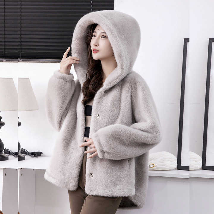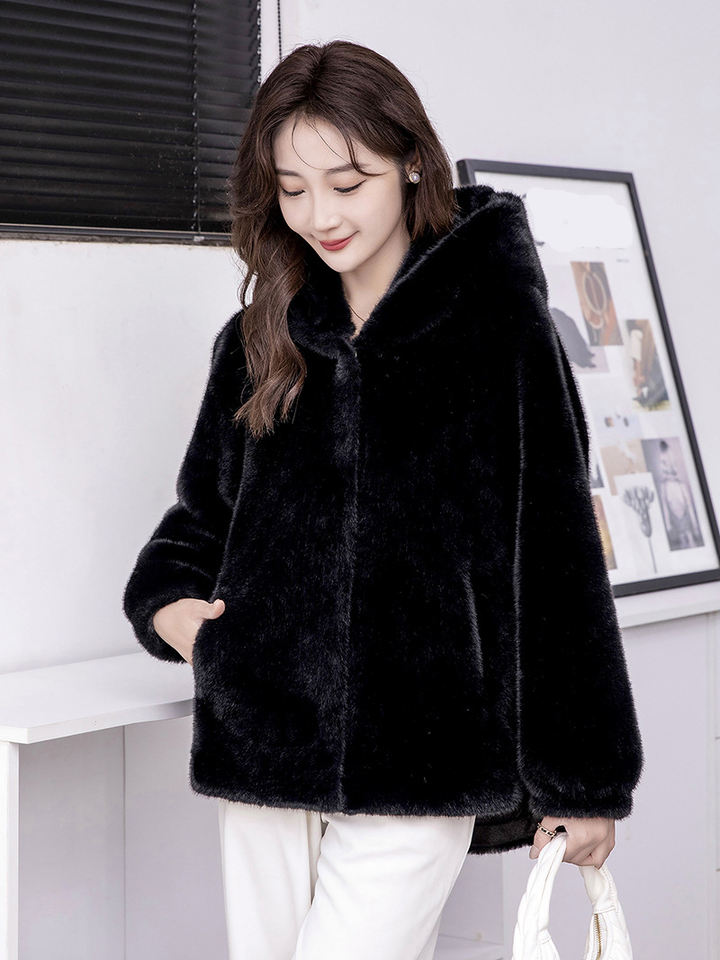 Giacca in Pelliccia Sintetica da Donna alla Moda, Cappotto Invernale con Cappuccio in Finta Pelliccia di Visone di Alta Qualità
