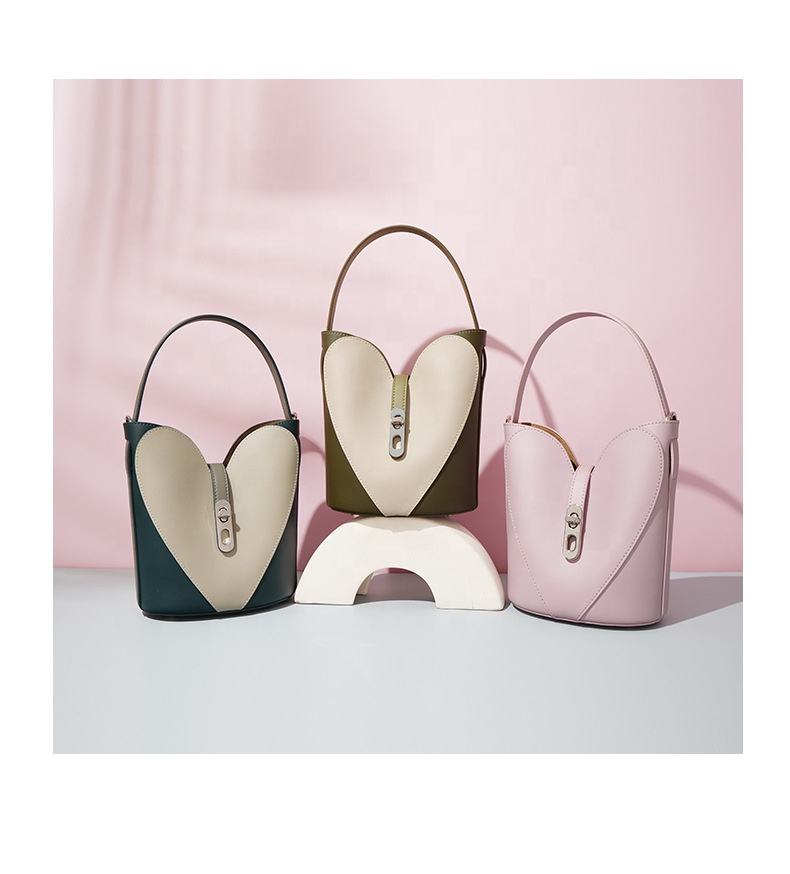 Borsa a Secchiello in Vera Pelle con Cuore Traforato per Donna, Elegante e Casual con Chiusura a Lucchetto da Guangzhou