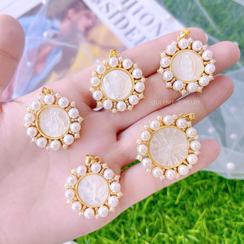 Fashion Life Tree Virgin Mary Angel Necklace Women Natural Mother of Pearl Shell Oval Round Pendant for Girls' Classic Jewelry