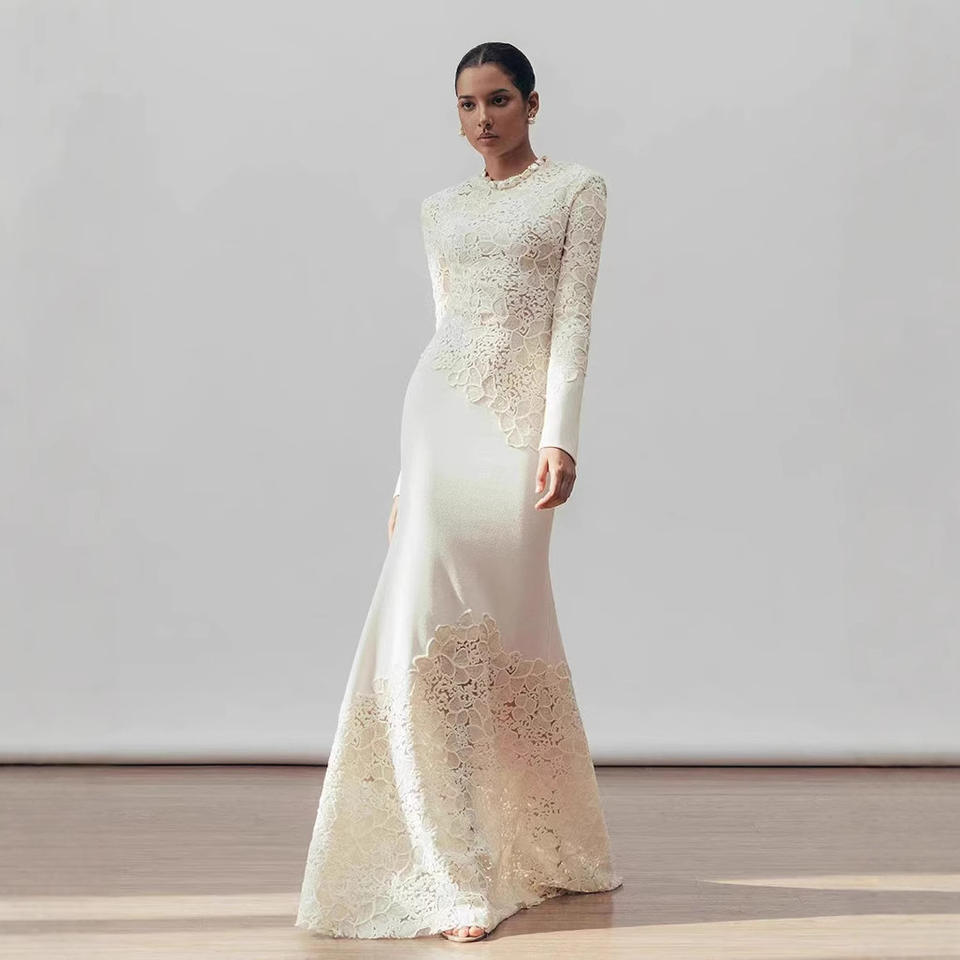 Fashion Luxury High Quality Vintage Elegant Hook Flower Fishtail White Tight Banquet Elegant Evening Dress