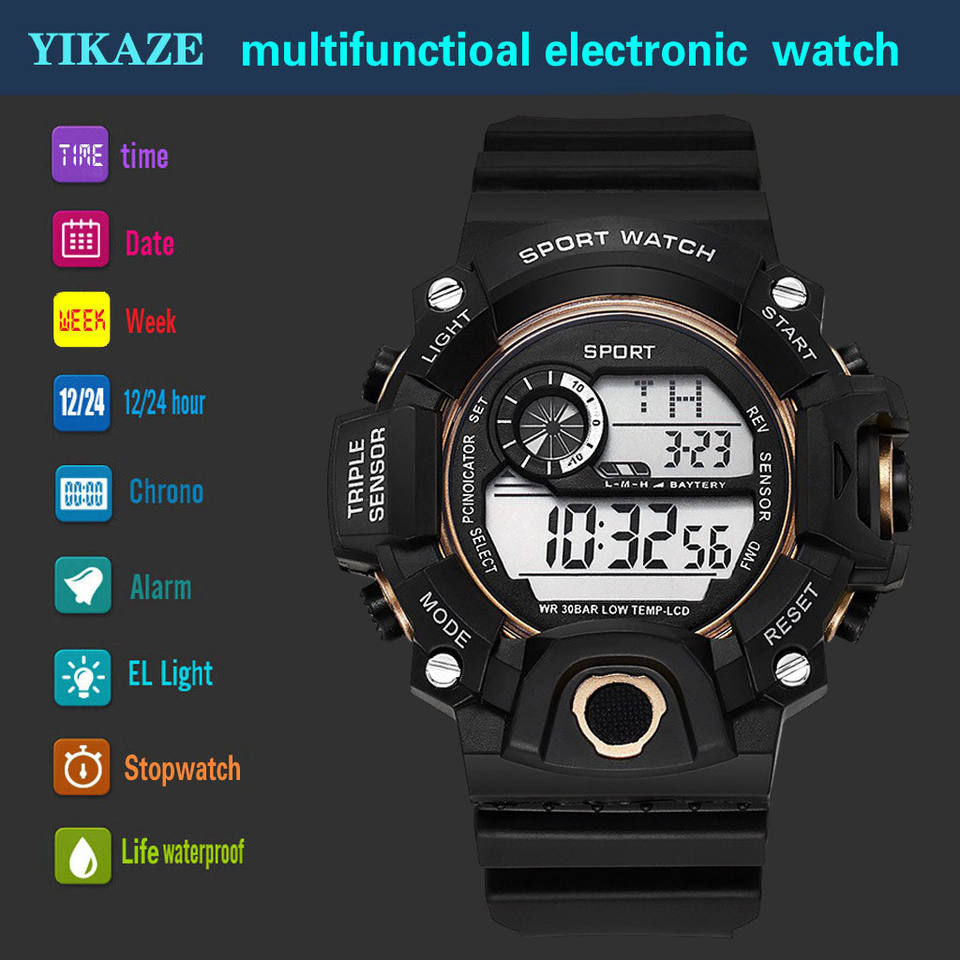 Fashion Men's Sports Smart Watch Large Dial Multifunctional Electronic Wristwatch LCD Display Silicone Strap Plastic Case Alarm