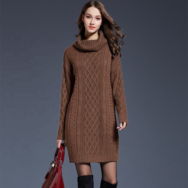 Fashion Newest Plain Solid Loose Plover Plain Knit Turtleneck Sweatshirt Dresses
