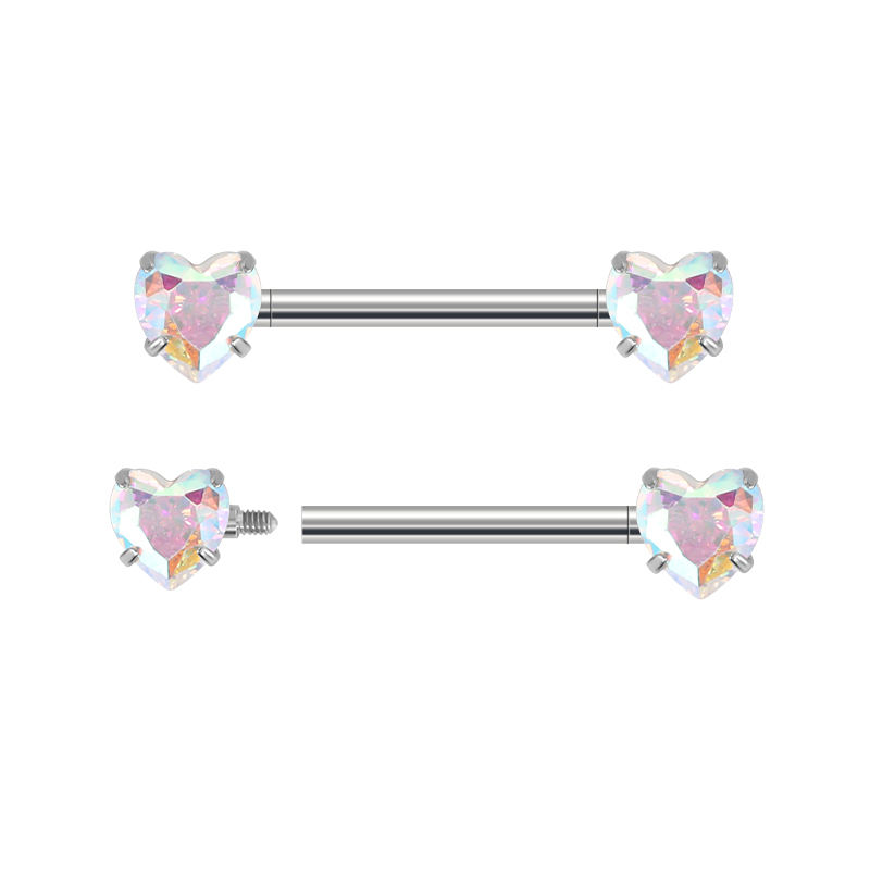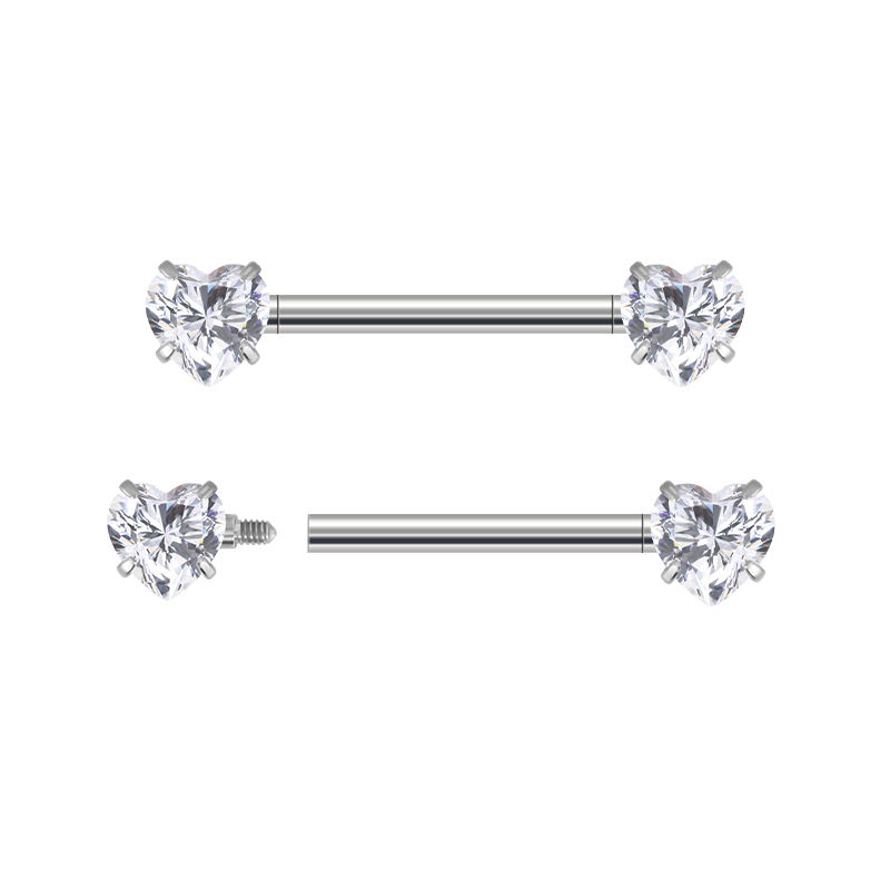 Fashion Nipple Ring ASTM F136 Titanium Prong Set Heart CZ Barbell Nipple Ring Piercing Body Jewelry