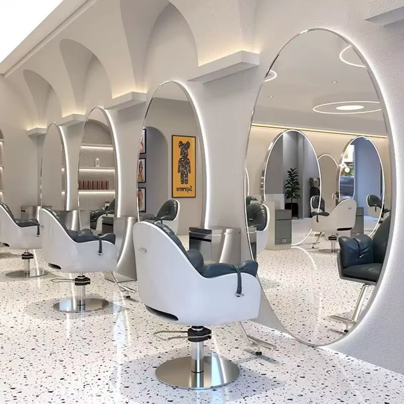 Fashion Oval Style Beauty Salon Led Lighting Stainless Steel Mirror Hairdressing Mirrors Stations