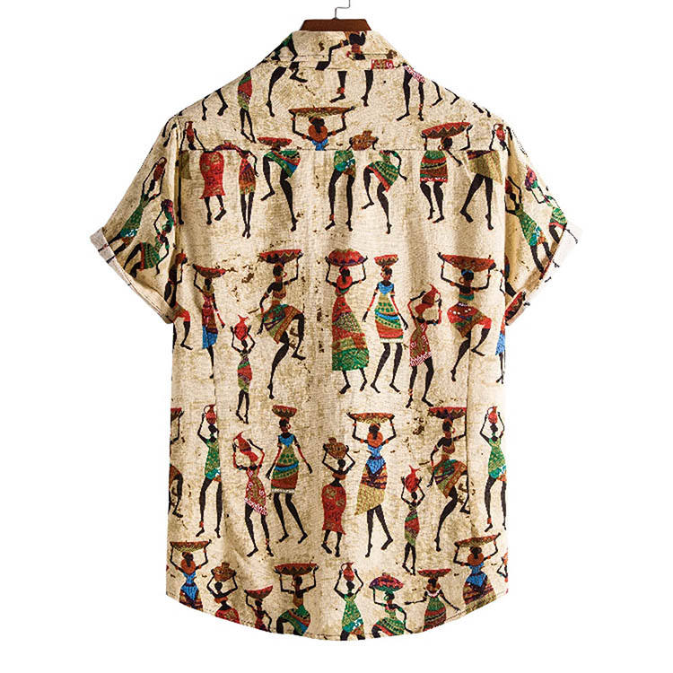 Camicia da uomo estiva casual in lino a maniche corte, traspirante, con stampa patchwork alla moda, stile streetwear