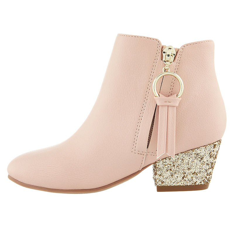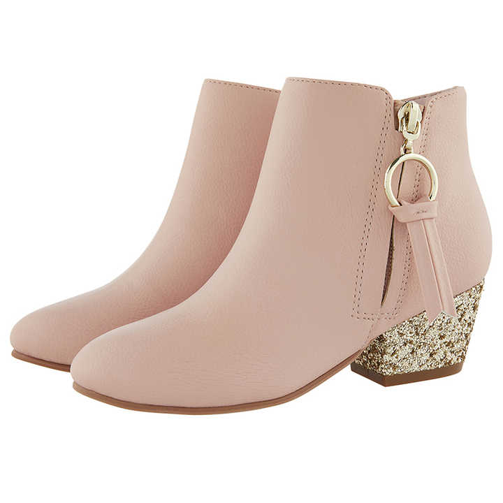 Stivali Invernali per Bambine in Pelle Rosa con Zip e Tacco Basso Dorato