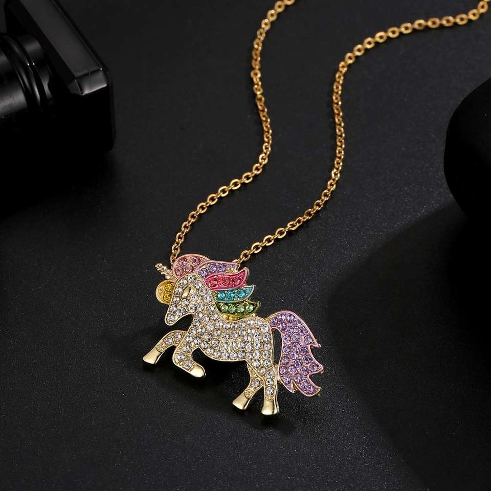 Rhinestone di modo colorful unicorn pendente della collana della collana del Cavallo