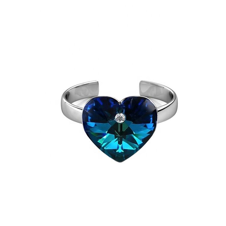 Anello di moda con anello con cuore blu oceano impreziosito da cristalli Swarovski in argento Sterling gioielli 925 anello placcato in oro 18K