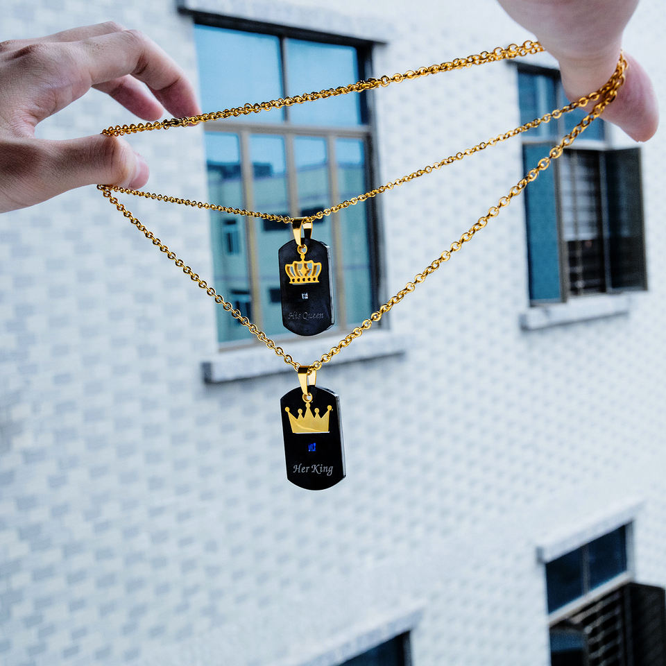 Fashion Romantic Couple Her King His Queen Crown Stainless Steel Dog Tag Pendant Necklace for Couple