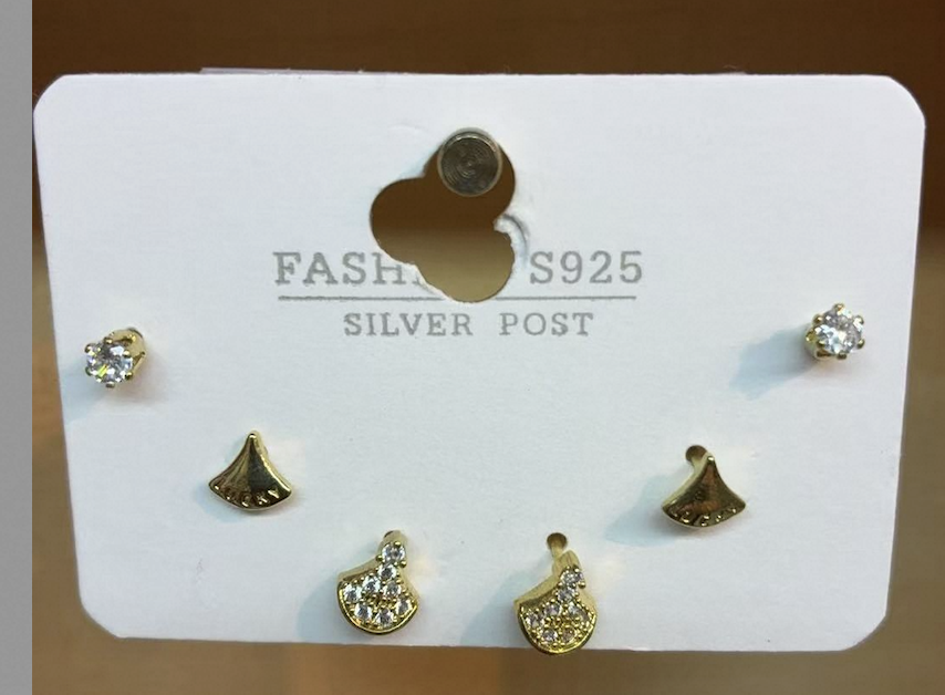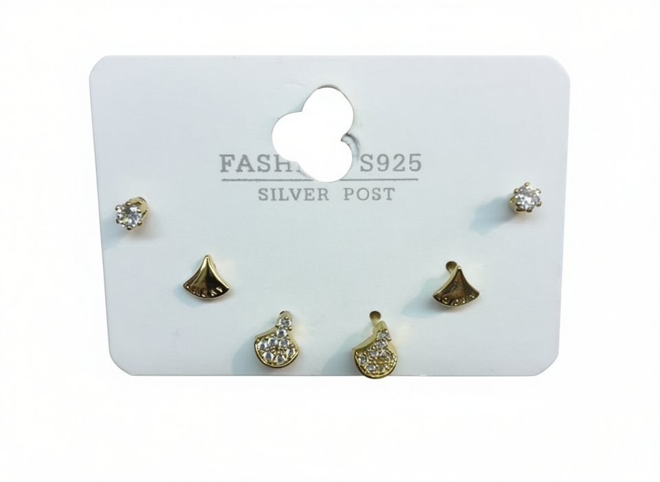 Fashion S925 Silver Post Earrings Gold Plated Crystal Studs Women's Jewelry Set