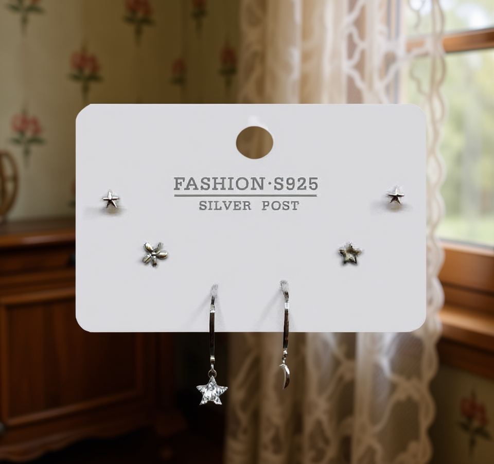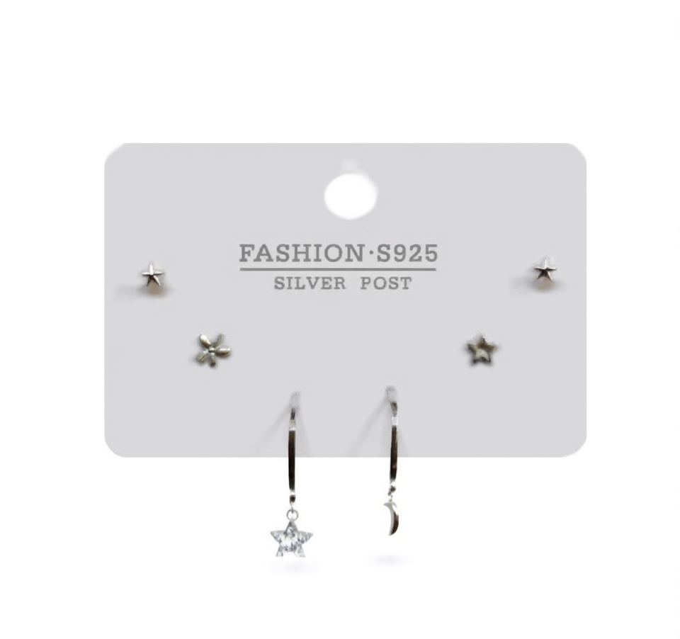 Fashion S925 Silver Stud Earrings Star Shape Zircon Inlay Women's Jewelry
