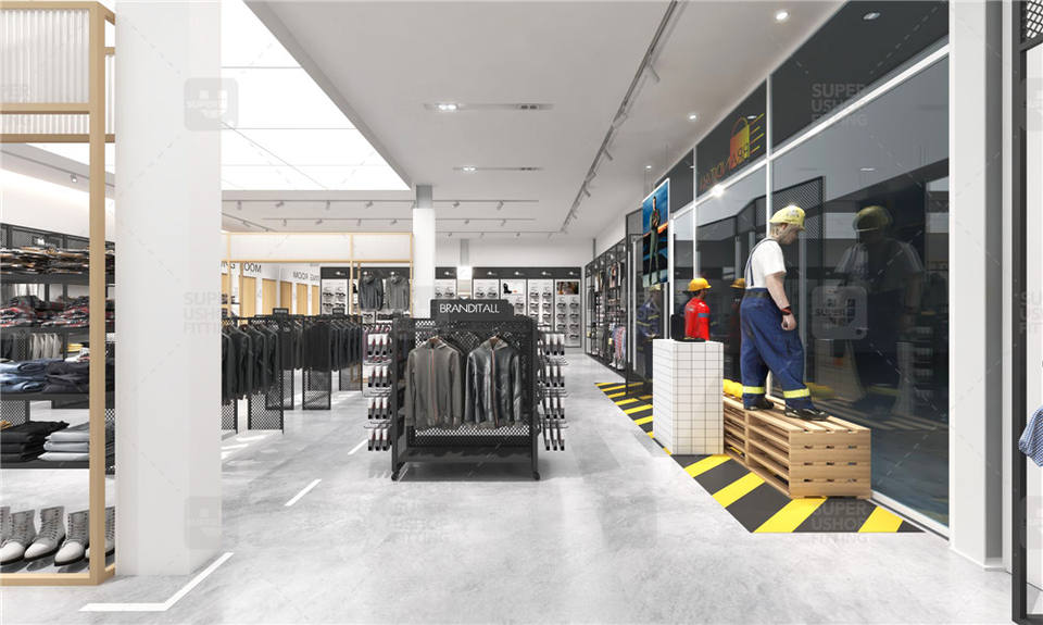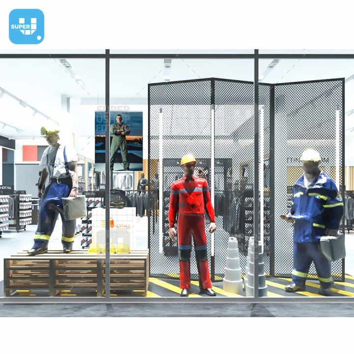 Giacca di Sicurezza alla Moda, Abbigliamento da Lavoro, Decorazioni per Negozi, Design d'Interni Personalizzato per Negozi di Abbigliamento Maschile e Vetrine di Abbigliamento da Lavoro