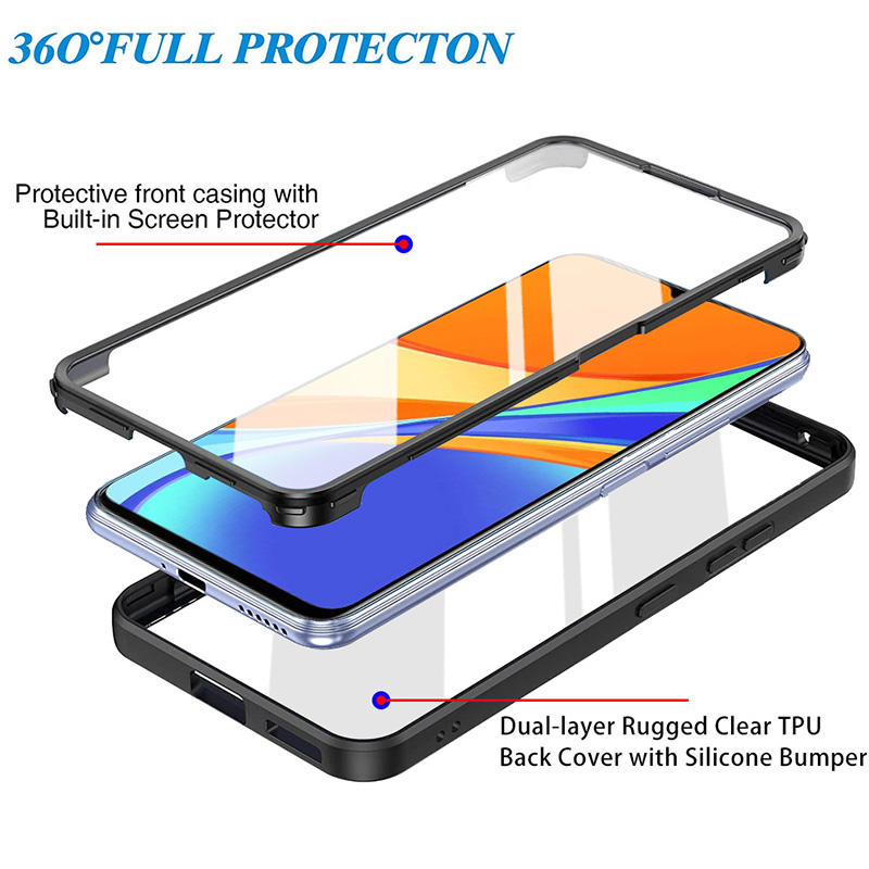 Custodia protettiva trasparente per cellulare TPU + PC 360 antiurto alla moda per Xiaomi Redmi 9C Cover trasparente con protezione dello schermo