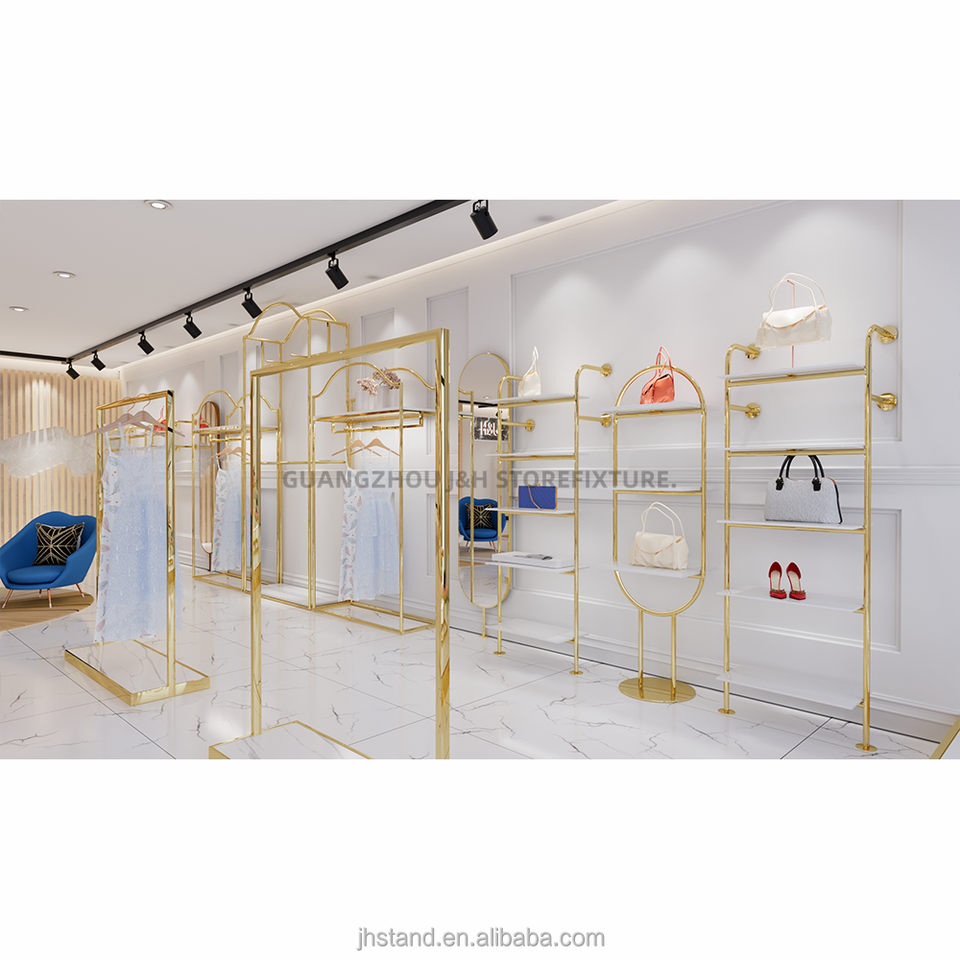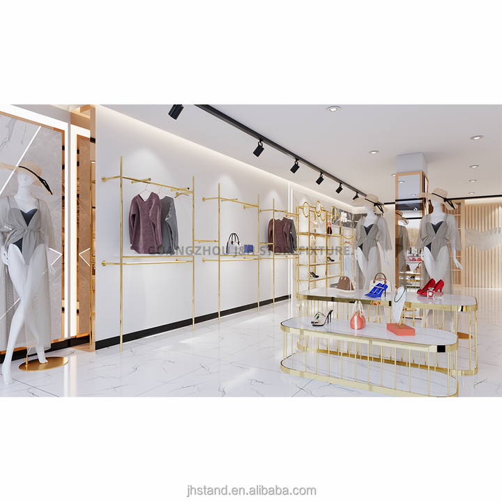 Fashion Showroom Clothing Shop Furniture Design Gold Clothes Rack Shop Design Black Men Clothing Store Interior Design