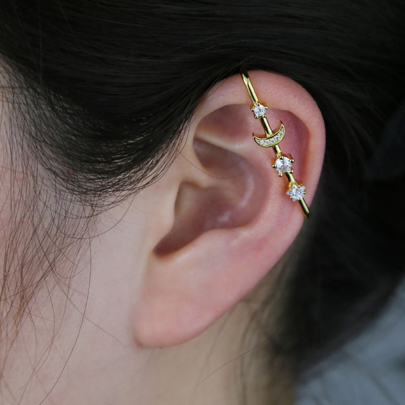 Orecchino a clip alla moda con stella e luna, gioiello da donna, regalo per amante