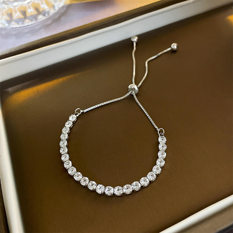 Bracciale e Bangle di Tendenza Placcato in Argento con Zircone a Fila Singola per Donne e Ragazze, Gioiello per Matrimoni, Feste, Idea Regalo
