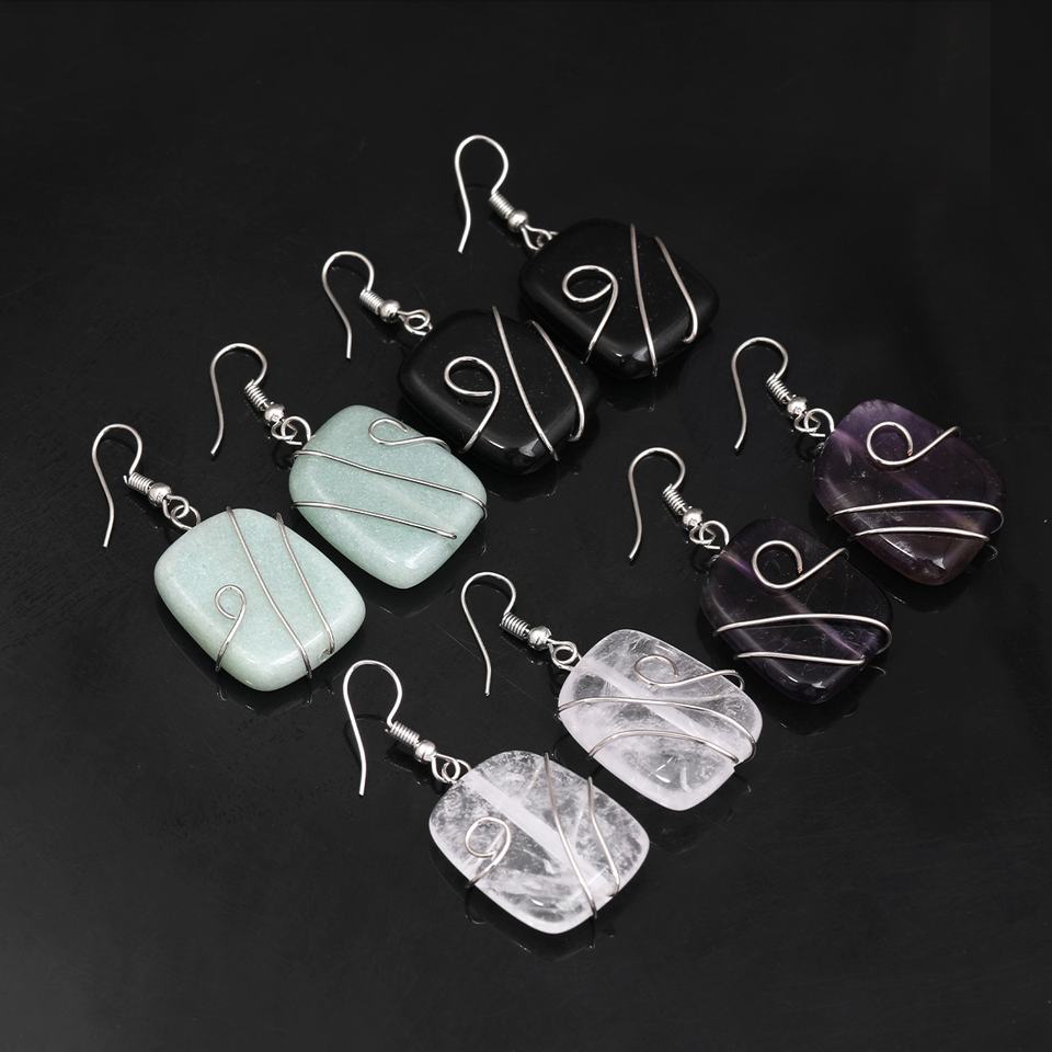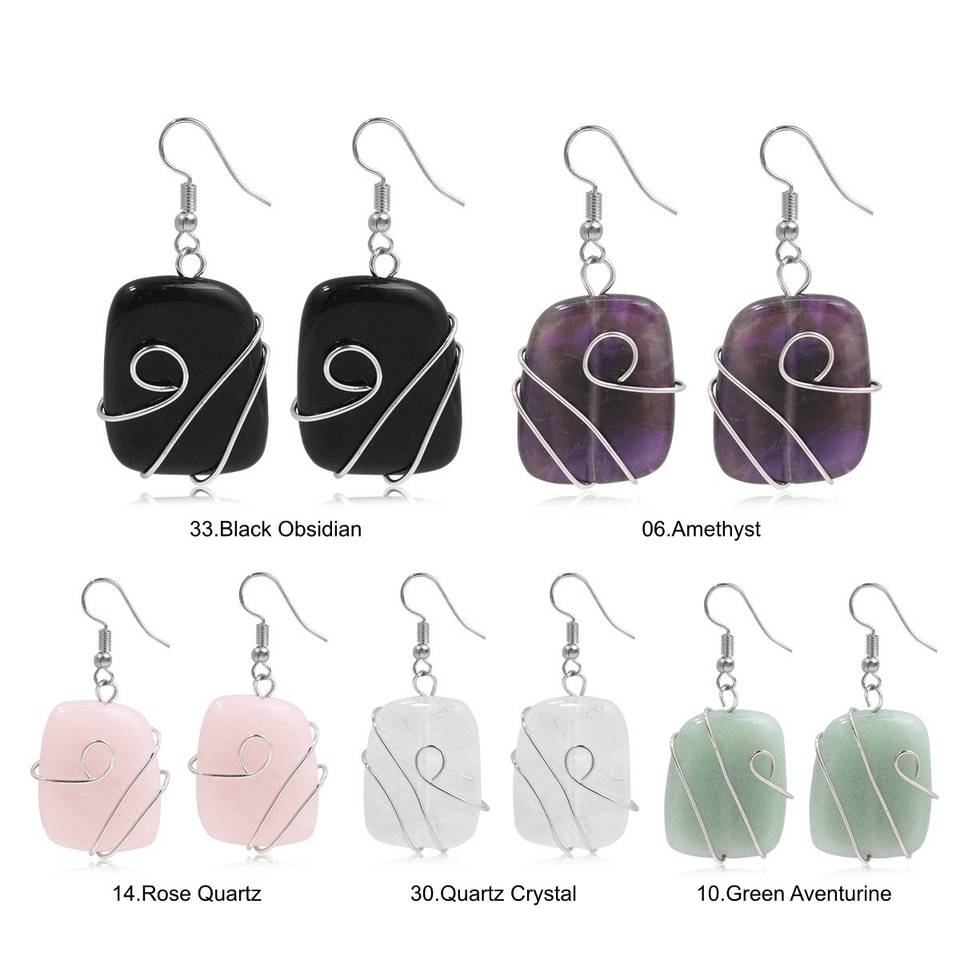 Orecchini in Acciaio Inossidabile Argento con Pietra Avvolta in Filo, Gioielli con Cristallo e Agata per Donna, Regalo Elegante